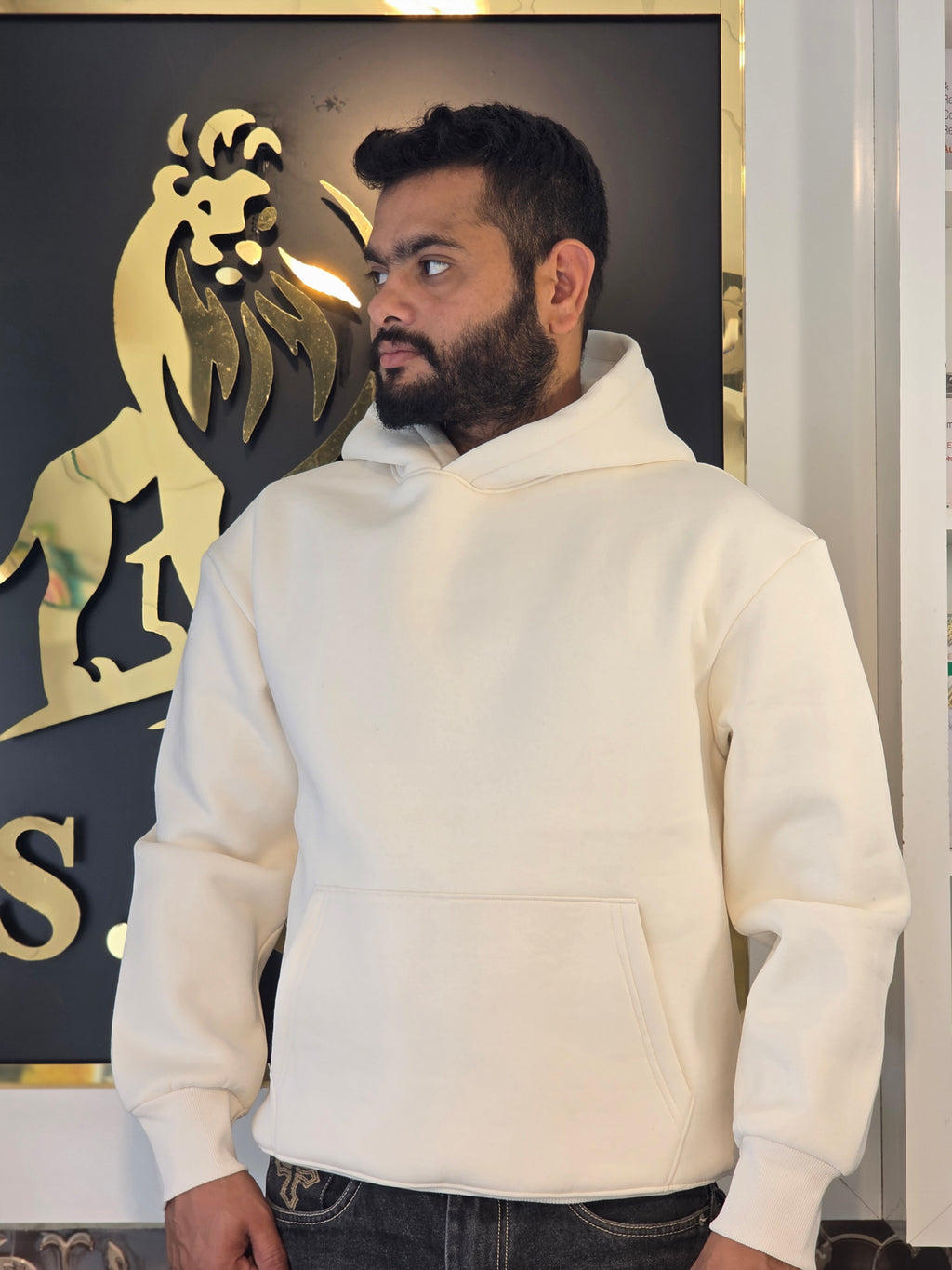 MENS PREMIUM PLAIN CREAM COLOUR HOODIE 100%COTTON